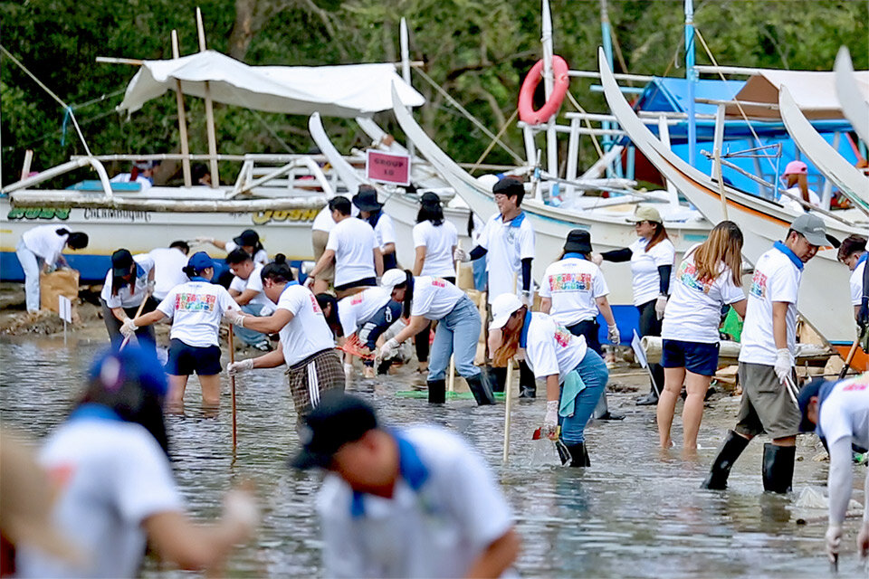 Implementing beach cleanups and mangrove planting together with the sales company