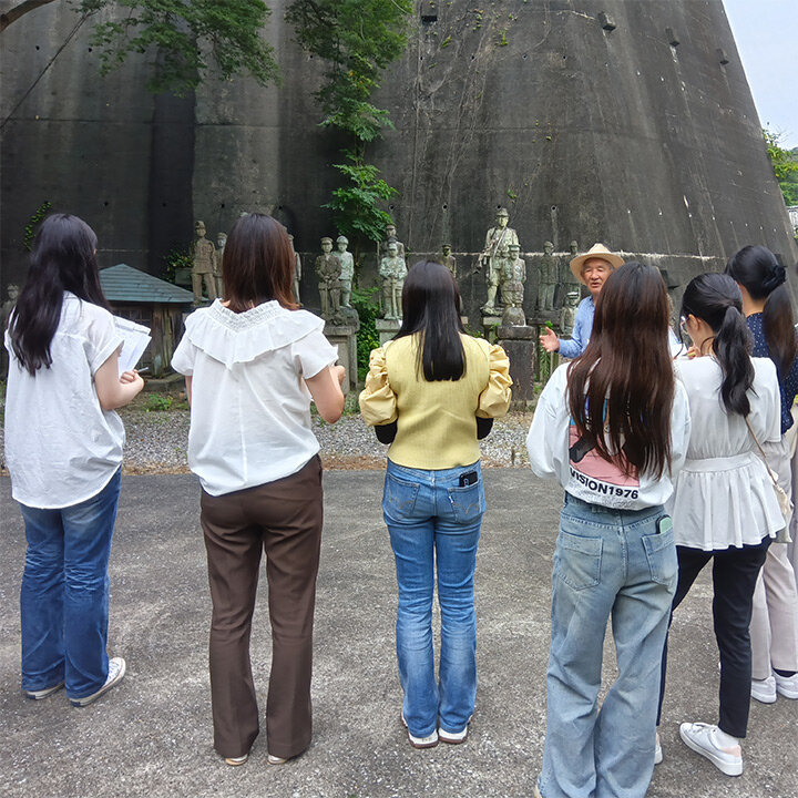 ゼミでは2022年に、アメリカ軍が最初に上陸した沖縄本島の読谷村で戦争遺構を活用したダークツーリズムの現地調査を行い、戦争遺構を観光の対象にすることへの複雑な遺族感情や、入場料収入のみでの収益化の難しさなどの課題を踏まえて、より訪問しやすい教育旅行(学校行事として行われる修学旅行など)に活用することを考えました。2023年にはより身近なところで戦争を「自分事」として捉えることが必要と考え、愛知県内の教育旅行を増やすためのダークツーリズムを提案し、愛知県主催の「観光まちづくりアワード」で奨励賞を受賞しました。そして2024年には知多半島、2025年には三河で戦争遺構の現地調査を行い、教育旅行のためのコースの提案を行っています。