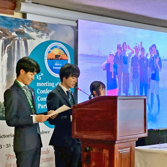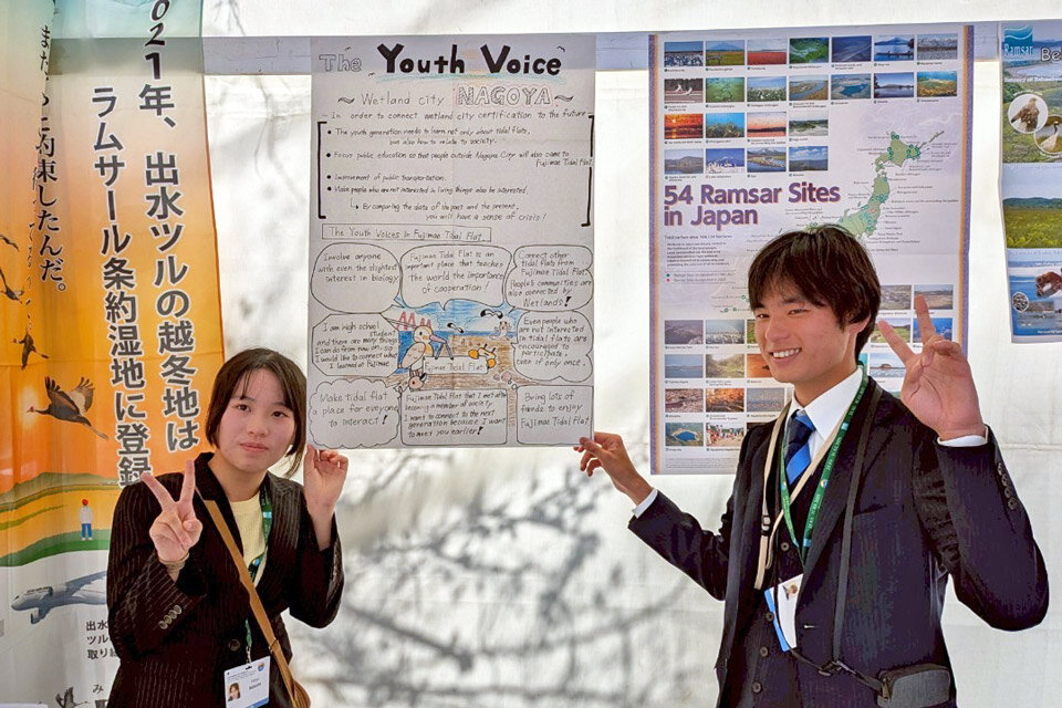 中田さんは、「わたしたち『ユース』という存在がここで発表することに意義があるんだな、世代を継ぐってことが大事なんだってすごく実感しました」と話します。世界の取り組みや問題についてのさまざまな学びがあり、その内容を環境に興味のある人だけでなく、あまり興味がないという人にも伝えていく必要性を感じたそうです。さらに「実際に、藤前干潟は名古屋市民が全員でゴミを分別したから守られたわけですよね。その中にあまり自然に興味がない人だっていたはずです。でも、そういう人も一緒に巻き込まないと自治体、国全体で湿地を守ることって不可能だと思うんです。私自身、ユースという立場を生かして湿地の大切さを伝えていけたらいいなと思っています。」とも述べました。