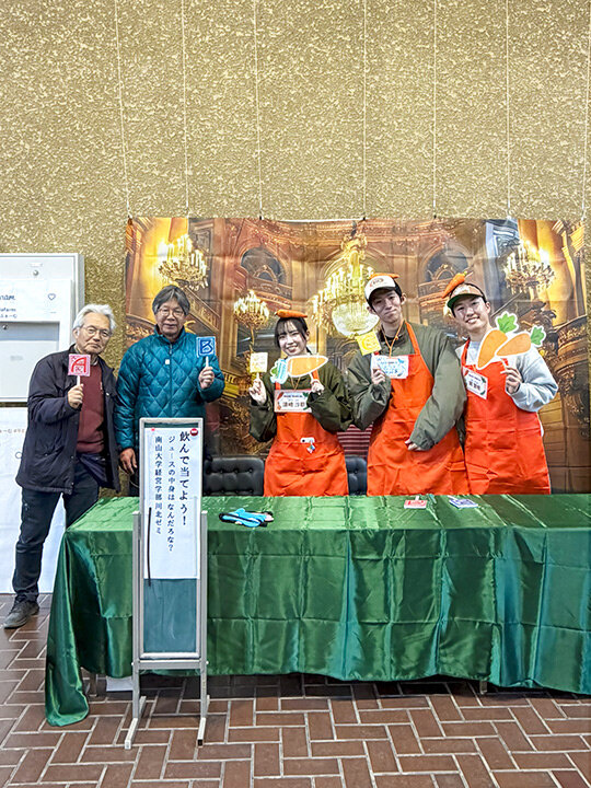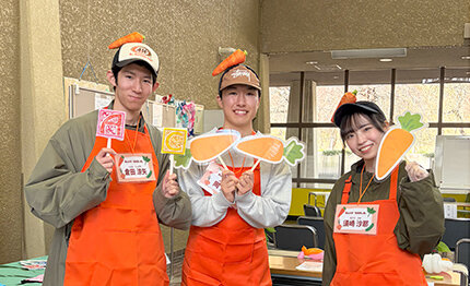 活動の一環として、2026年1月24日(土)、25日(日)に名古屋市農業センターで「愛知の伝統野菜(八事五寸にんじん)アピールイベント」を開催します(イベントは終了しています)。当日は特設ブースを設置し、ミニゲームや未来耕し隊のこれまでの活動内容の発信を行います。ミニゲームは、未来耕し隊で育てた八事五寸にんじんを使ったスムージーの飲み比べクイズ「飲んで当てよう!ジュースの中身はなんだろな?」を企画。他にも、農業センター主催で、八事五寸にんじんの自慢大会や、有名講師による料理教室、座談会などが開催されます。伝統野菜に触れられて、子どもから大人までが楽しめる、魅力的なイベントです。ぜひ足を運んでほしいと意気込んでいます。未来耕し隊の活動はこのイベントが集大成になるそうですが、今後は学んでいる経営学を生かし、農業センターや伝統野菜のマーケティングやブランディングも行いたいとのこと。また、活動でつながった縁を後輩のゼミ生たちにつなげ、もっと関係者を増やしていきたい、最終的には農業が若者たちの将来のキャリア選択のひとつであることを広めていきたいと語ってくれました。