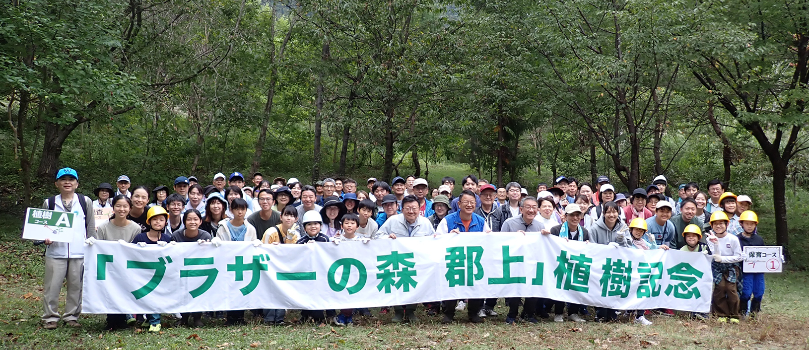 ブラザーは2008年に、岐阜県および郡上市と、郡上市内のスキー場跡地など計3カ所を「ブラザーの森 郡上」とする協定を締結して以来17年間にわたり、毎年春と秋にブラザー従業員とその家族が参加し、森林の復元に取り組んできました。2023年には環境省から「自然共生サイト」に認定され、生態系保全への取り組みが高く評価されました。 また、「木を植える 」ことを中心とした活動から森林の生態系回復を目指すことへ進化したことに伴い、今回から活動名を「植樹・保全ツアー」と改めました。